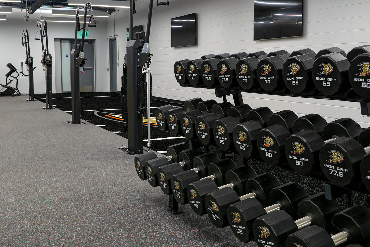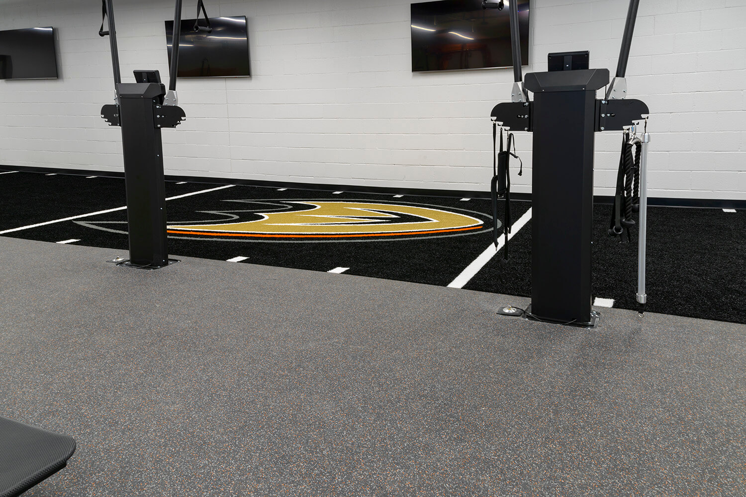 The Anaheim Ducks’ premier training facility is equipped with REGUPOL’s high-performance flooring solutions, tailored to meet the intense demands of professional hockey athletes. REGUPOL aktivpro roll flooring provides unmatched shock-absorbing comfort, ideal for high-impact training sessions and rapid drills, while the durable REGUPOL aktiv flooring enhances traction and stability underfoot. To further protect the facility, REGUPOL crash pads are strategically placed to absorb impact during heavy weight training. Together, these solutions ensure the Ducks’ facility prioritizes player safety, comfort, and peak performance.