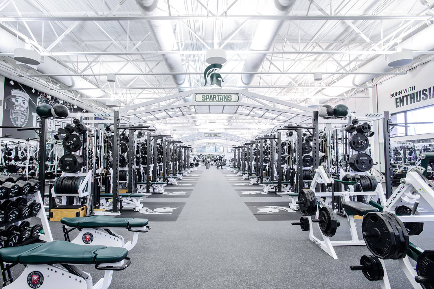 Michigan State Spartan pride is on full display in the Duffy Daugherty Building, where excellence in athletics meets cutting-edge design and functionality.