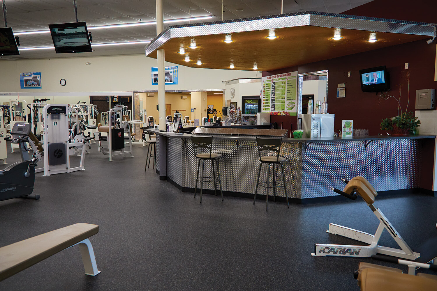 New York Fitness Club in Lebanon, PA, chose REGUPOL aktiv Rolled Rubber Flooring and REGUPOL aktivlok Interlocking Rubber Tiles to enhance their facility with premium-quality, high-performance flooring. The installation featured a sleek black base with a custom blend, creating a modern aesthetic that complements the club’s vibrant, high-energy environment. The decision to use REGUPOL flooring highlights the club’s commitment to providing a safe, reliable surface that supports both athletes and fitness enthusiasts, ensuring optimal comfort and performance during every workout.