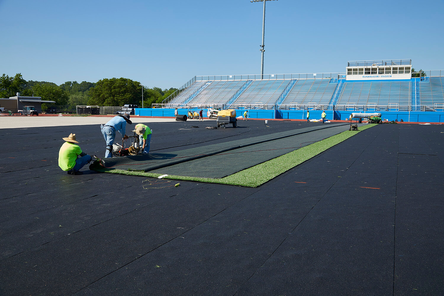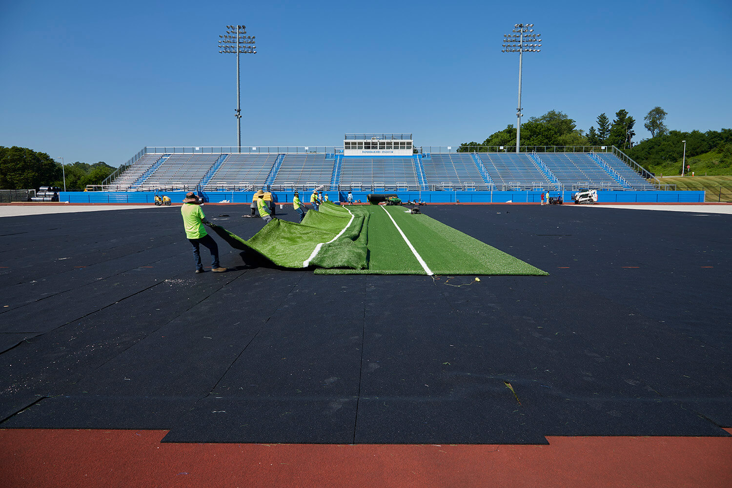 The Spring Grove Area High School project, completed in 2021, highlights REGUPOL's innovative approach to sports facility construction. Central to this state-of-the-art 5,000-seat football stadium and practice fields was the integration of REGUPOL abzorb—a cutting-edge, pre-fabricated synthetic turf shock pad made from recycled tire rubber. By incorporating REGUPOL abzorb, the stadium prioritized athlete safety, durability, and peak performance, demonstrating REGUPOL's dedication to eco-friendly, high-quality sports solutions.