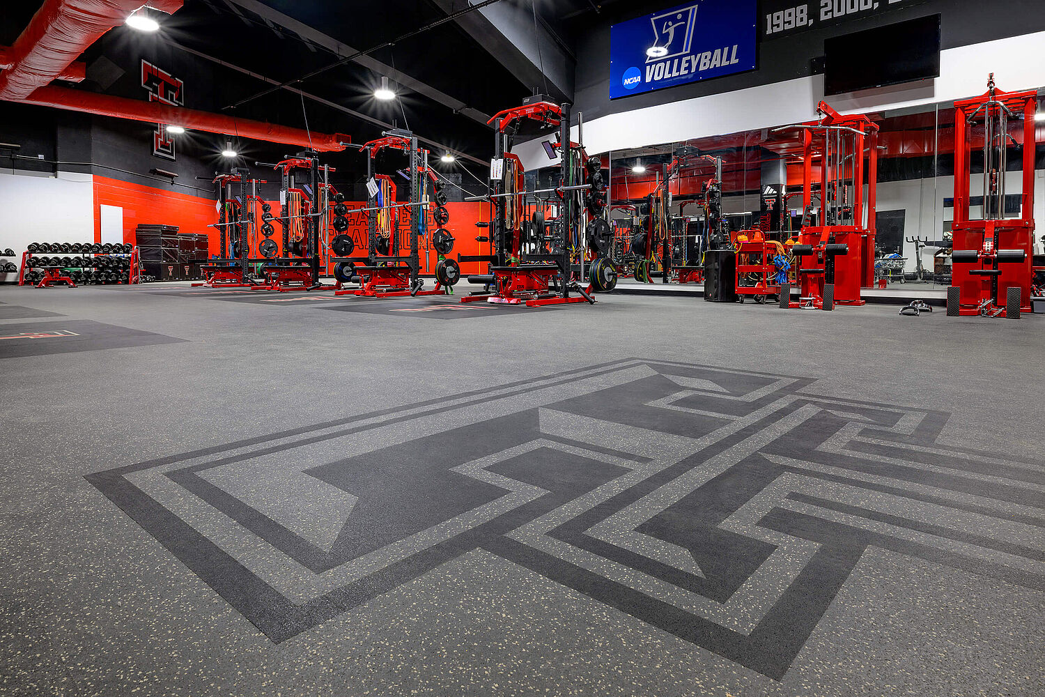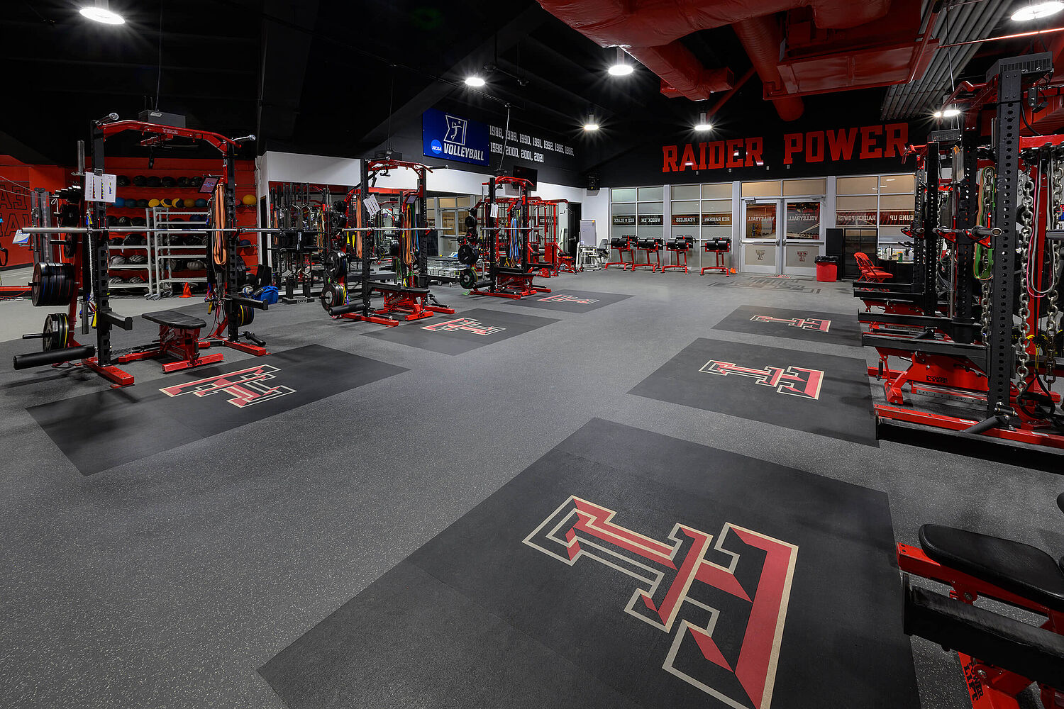 Texas Tech Volleyball has invested in its athletes’ development with a dedicated strength and conditioning facility located inside the United Supermarkets Arena, creating a singular home for everything Red Raider Volleyball—from training to practice to game day. Volleyball players rely on explosive jumps, powerful swings, and quick lateral movement, and those skills are built in the weight room long before game day. This reimagined training and performance space reflects the university’s dedication to empowering Red Raider volleyball athletes with a competitive home-court edge.