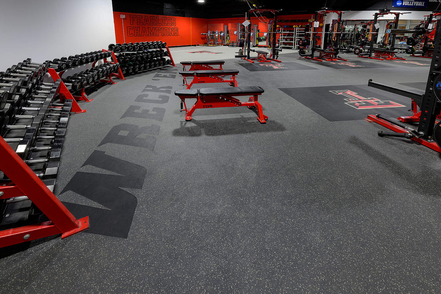 By combining advanced flooring systems with a space built specifically for the volleyball program, Texas Tech has created a facility that not only prepares athletes physically but also reinforces program pride. The volleyball strength and conditioning center sets a new standard for collegiate volleyball training, showing how the right environment can drive performance, reduce injuries, and help athletes reach their full potential. With its proven durability, safety, and performance, REGUPOL flooring provides the foundation that makes this level of training possible—supporting Red Raider Volleyball today and for seasons to come.